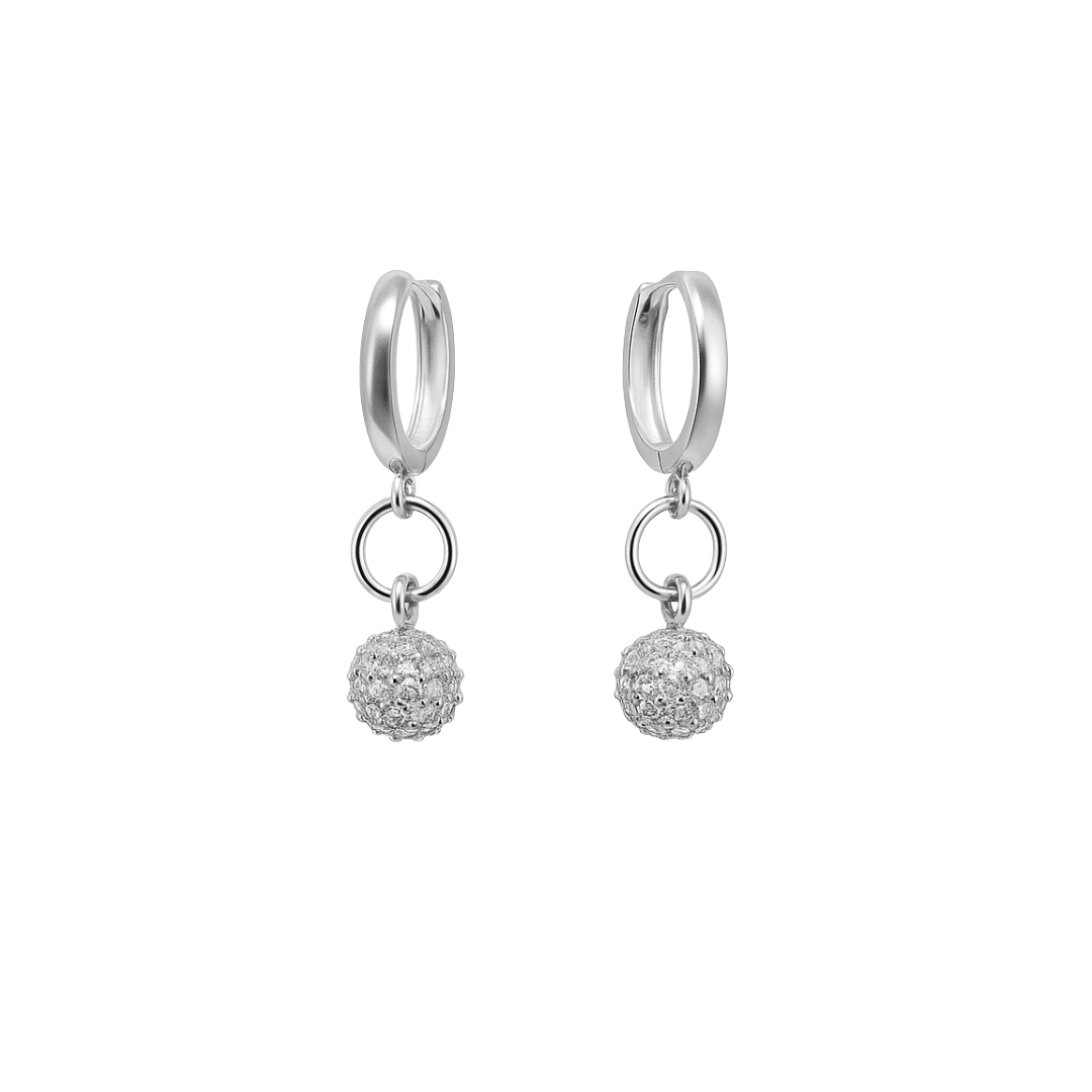 Elegant and timeless, these Sparkling Ball Drop Earrings are crafted from 925 sterling silver, designed to bring a refined touch to any outfit. Featuring a delicate hoop with a hanging ball pendant encrusted with shimmering cubic zirconia, they combine simplicity and brilliance in perfect harmony.
